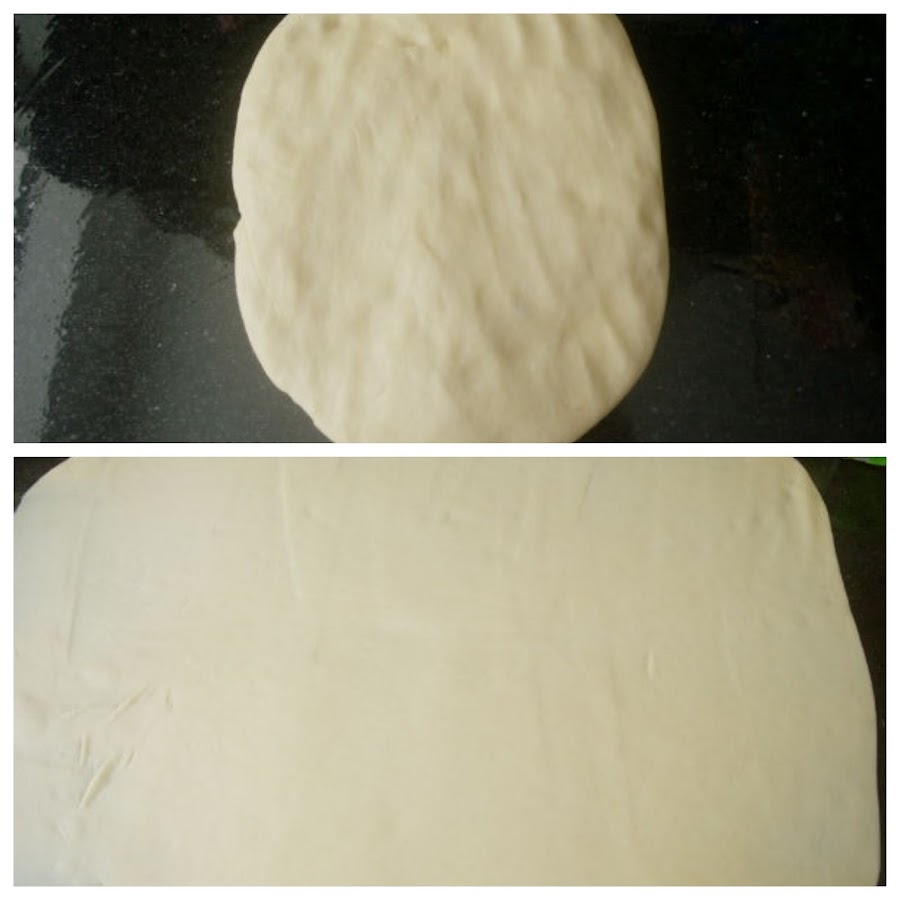 Spread the dough with a rolling pin until you get a 40X50 cm rectangle.