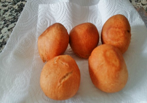 En una sartén pequeña, ponemos a calentar el aceite, que cubra más o menos la mitad del cazo. Ponemos los krofi en el aceite y lo freímos un minuto o dos por cada lado a fuego medio-bajo