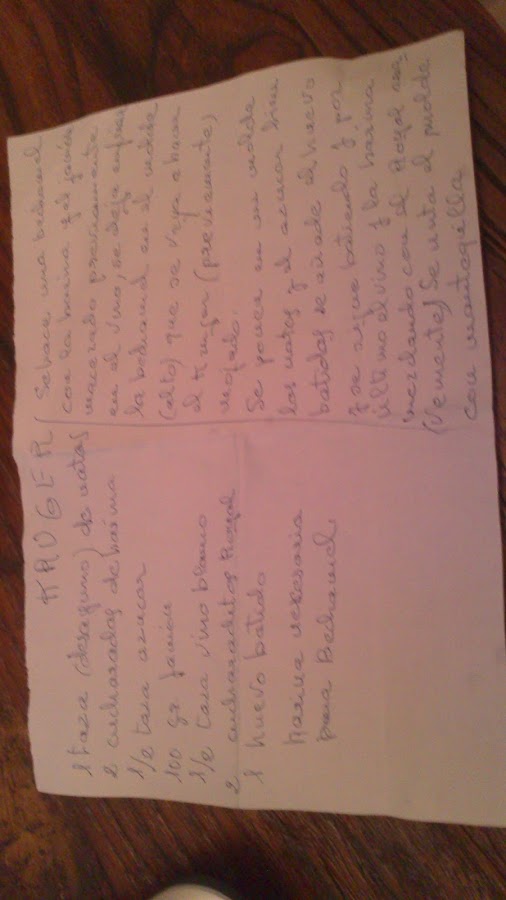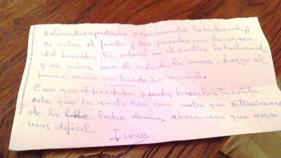 Por último debo de dar las gracias a Irene que es la protagonista de esta receta. A ella se la debo. Es la mami de un compañero de trabajo que ya ha probado mi versión y me gustó pues le pude transportar a su época de infancia. Qué fácil es a veces lograr esto solo por un olor o un sabor. Gracias de nuevo. Aquí abajo la versión original.