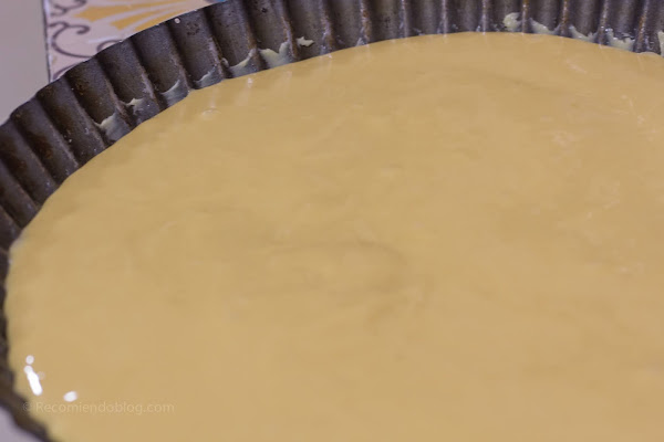 Poner esta mezcla en un molde para tarta enmantequillado y llevar al horno precalentado, por 15 minutos a 180-200º (dependiendo de tu horno). Debe cocinarse suavemente, pero no dorarse.