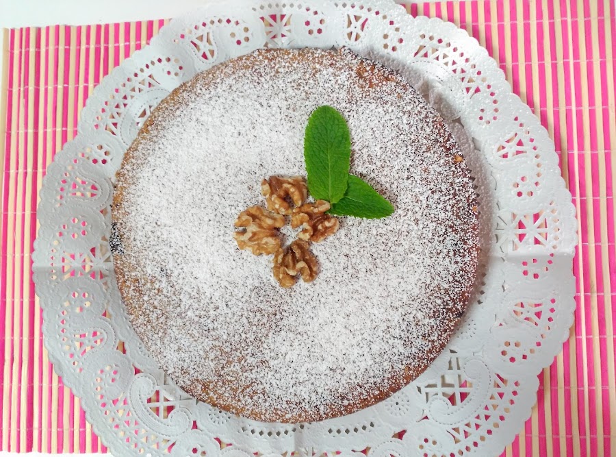 Espolvorear azúcar glas por encima y adornar con algunas nueces enteras.