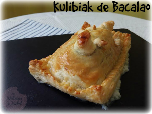 Buenos días! Hoy toca receta para Desafío en la Cocina. Este mes hemos tenido que preparar Kulibiak, una empanada rusa de pescado, generalmente de salmón. Como a mi no me gusta mucho el sabor (que le vamos a hacer, soy así de rara), me he decantado por el bacalao, pero ya veis que podéis hacerlo con el que mas os guste.