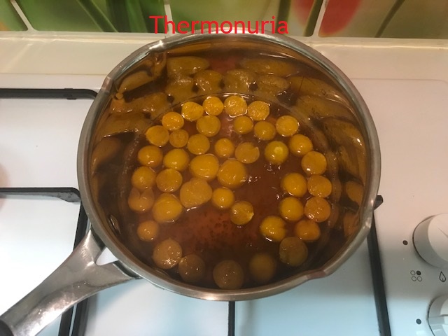 El primer paso es lavarlos bien, y luego secarlos. Los cortamos por la mitad, se pueden cortar a rodajas o dejar enteros, si decides dejarlos enteros pinchalos con un tenedor para que no exploten en el almibar.