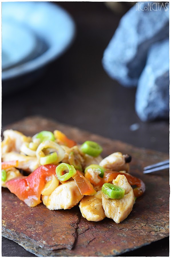 Un plato asiático donde el pollo es el protagonista, que se caracteriza por ir acompañado de cacahuetes y ajetes tiernos.