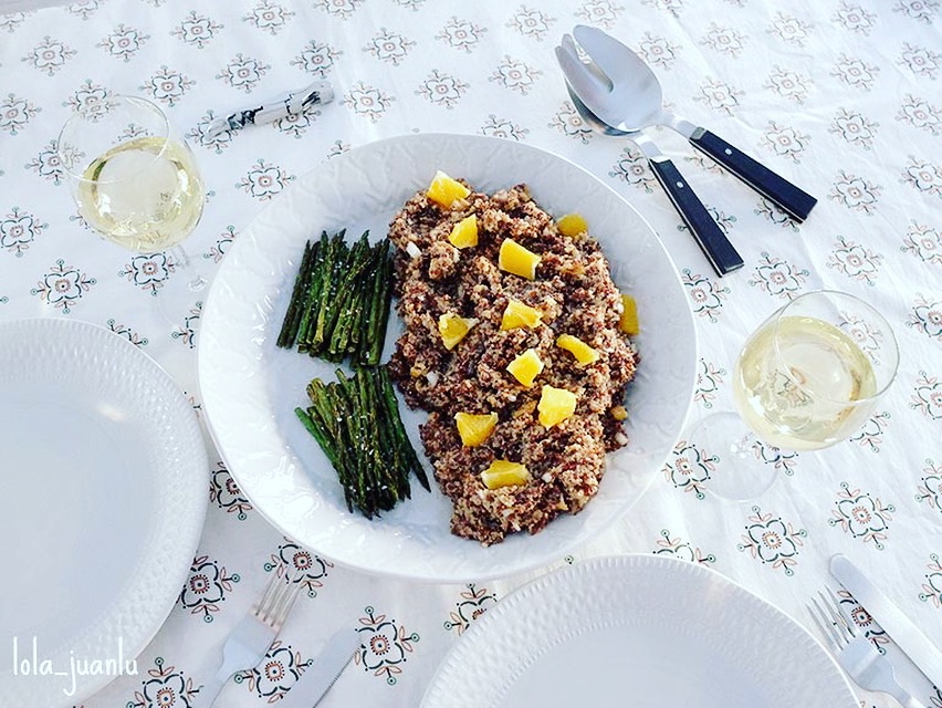 Ensalada de quinoa, dátiles y naranja con espárragos