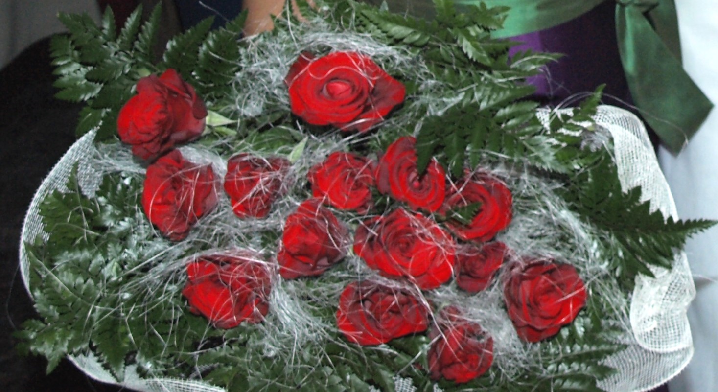 Estos ramos de rosas hechos por la floristería que decoró la iglesia, se los entregaron a sus madres.