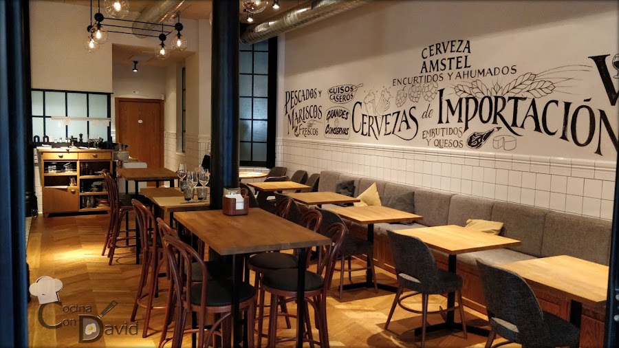 El local se divide en dos zonas, la zona de la barra del bar y la zona comedor con las mesas. No existe separación entre los dos ambientes, sólo el suelo es diferente. No busques privacidad, o estar excesivamente cómodo como en un restaurante, es un ambiente más informal donde poder compartir tapas y raciones variadas.