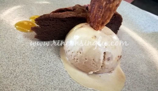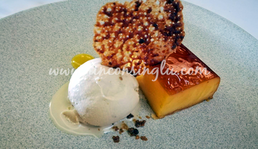 Y para terminar… ¡sí! había postres sin gluten. Aptos son solo dos, pero no es la típica fruta, así que es de agradecer Pedimos tocino de cielo acompañado de helado, y un bizcocho de canela sin harina con helado de Pedro Ximénez.
