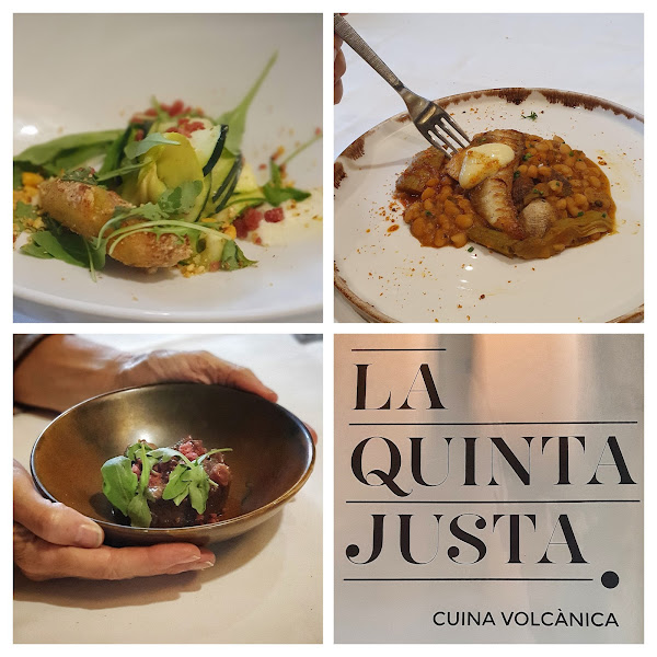 Despues de un duro dia en la granja, teníamos que reponer fuerzas y nada mejor que hacerlo en La Quinta Justa donde nos ofrecieron un reflejo de una cocina tradicional catalana con elementos de la Garrotxa, con toques de influencia mediterranea y con preséncia de productos de proximidad, elaborando una cocina acorde con el colectivo de Cocina Volcánica.