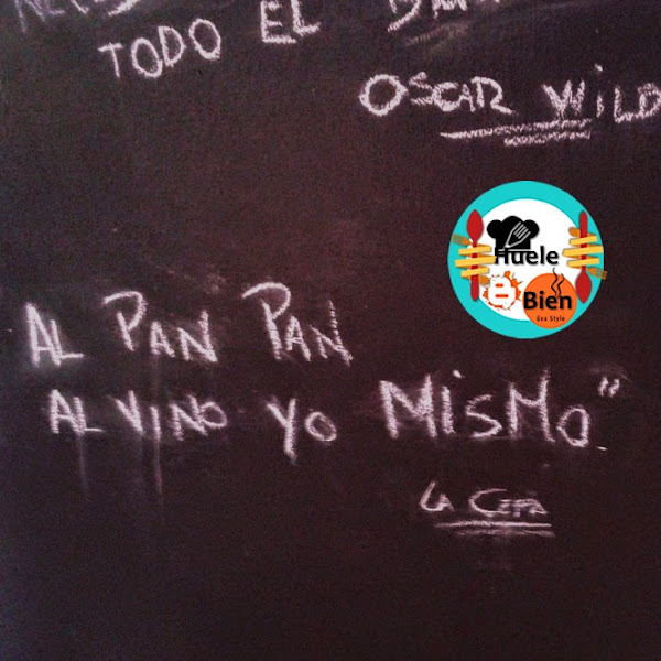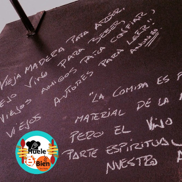 En el local puedes ver una pizarra escritas con frases celebres sobre la comida el vino y los amigos.