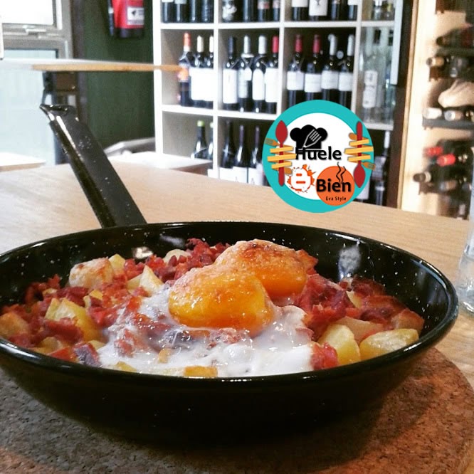 La segunda ración fue una sartén al horno de huevos estrellados, los pedimos un poco hecho por despiste. Luego nos dimos cuenta, que había sido mejor pedirlos casi crudos. Igualmente estaban muy ricos.