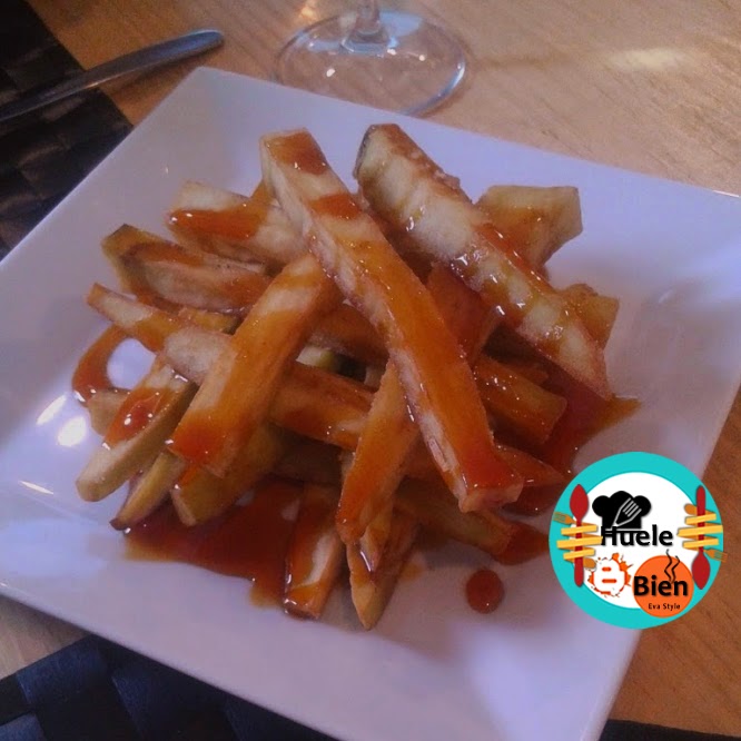 Para abrir boca, tomamos unas ricas berenjenas fritas con miel. Bien cortadas y cocinadas.