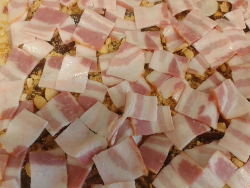 Terminamos colocando el bacon cortado al que le hemos quitado los filos.