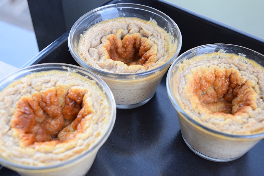 Colocarlos en una charola y antes de meterlos al horno, agregarle a la charola agua caliente (hasta la mitad de las flaneras) para hornear a baño maría
