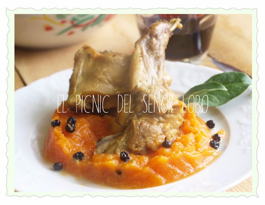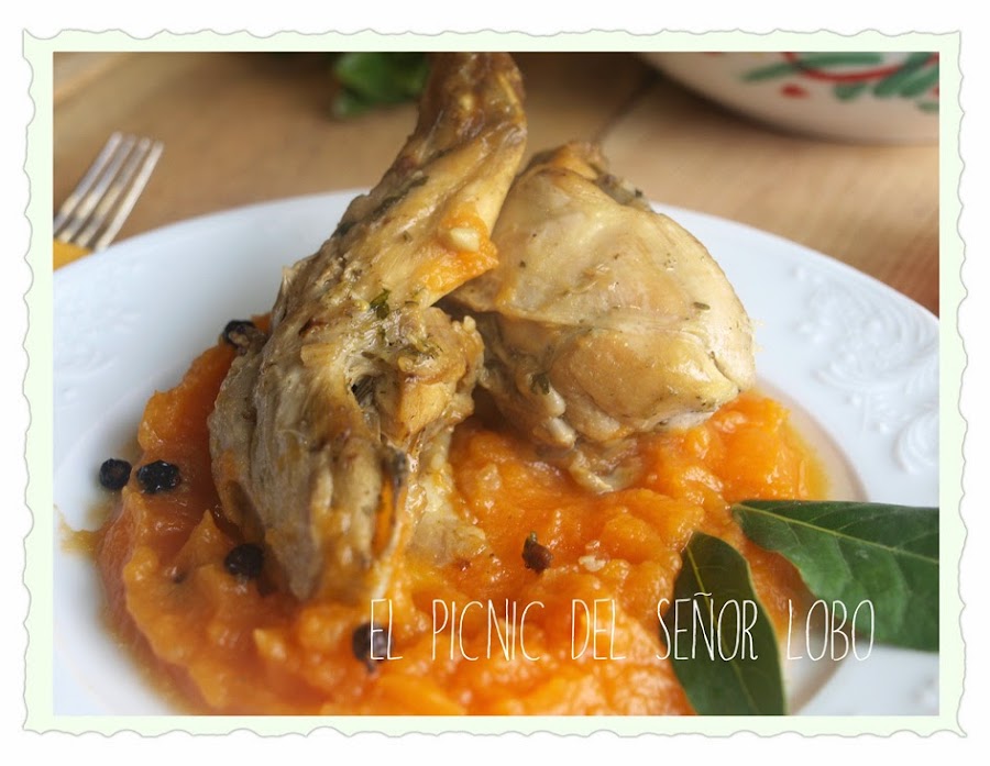 Conejo en escabeche con puré especiado de calabazA