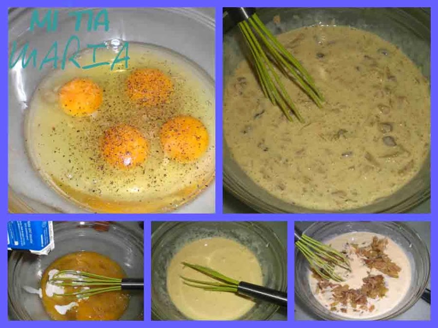 Ponemos en un bol los 4 huevos, un poco de sal y un poco de pimienta y batimos bien.