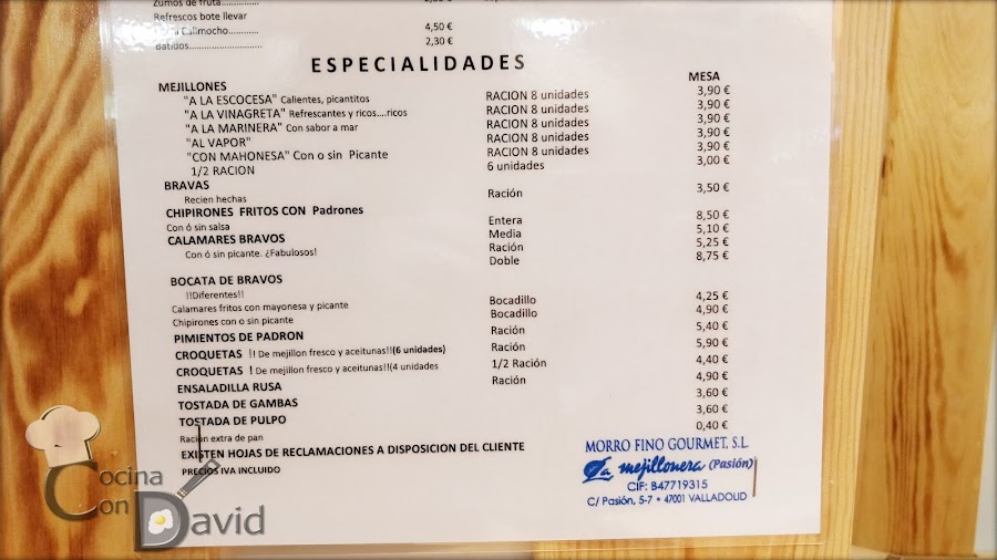 En La Mejillonera encontramos una carta sencilla, con raciones, tapas y sus especialidades. Tapas y raciones sencillas a precios económicos.