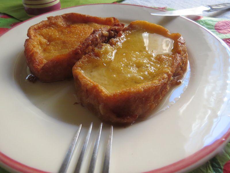 Desde Picoteando ideas han preparado estas Torrijas de nata (crema de leche) en almíbar de miel con las que se hace difícil poder resistirnos. Se ven tan ricas que dan ganas de hincarle el diente.