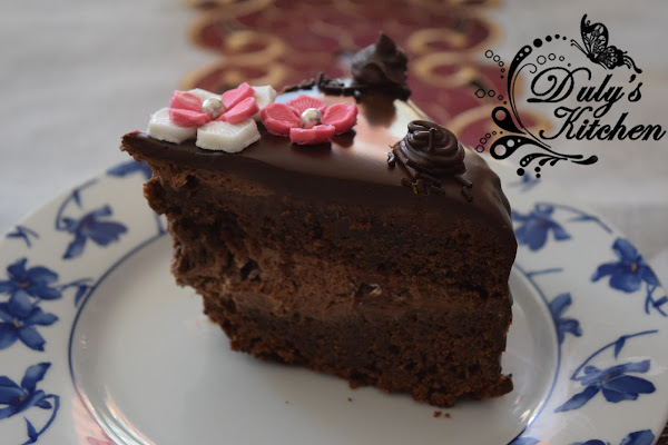 Mezclamos un bizcocho jugoso, con una mousse ligera y una cobertura cremosa, y todo de chocolate. Fantástica. No os voy a mentir, es entretenida de hacer pero de resultado inmejorable. Lo bueno de esta tarta es que está aún mejor con un par de días en el frigorífico, así que podéis empezar ha hacerla un par de días antes o el día anterior. La decoración os la dejo a vosotros, simplemente con la cobertura tiene ya un brillo y aspecto muy bonito.