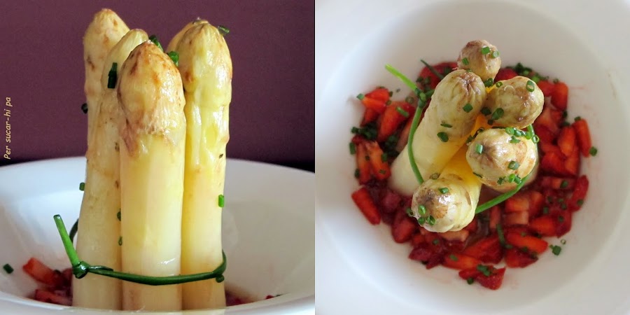 Pilar de Per Sucar hi-pa nos enseña unos deliciosos y sofisticados Esparragos con Vinagreta de Fresas, una receta sencilla pero muy vistosa, con unas fotos espectaculares y una ejecución magistral, no dejéis de probar los espárragos naturales como ella nos dice no tienen nada que ver con los de lata.