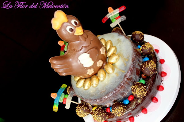 En realidad, la mona es sólo la figura de chocolate, el bizcocho es un pa de pessic y no lleva chuches. Encontráis alguna diferencia con la mía??? jajaja Seguir mirando y leyendo y lo entenderéis.