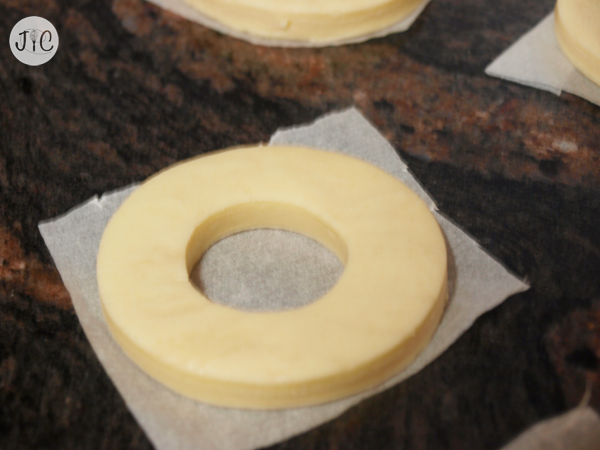 - Cortamos con un cortador de donuts o con dos cortadores circulares de diferentes tamaños (uno más grande que otro, vaya).