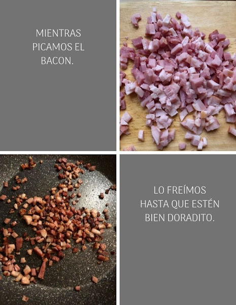 En una sartén, sin nada de aceite, cocinamos el bacon hasta que esté doradito.