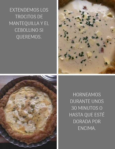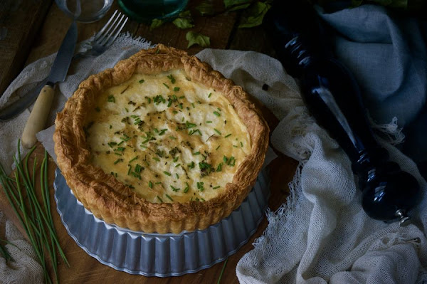 La receta la saqué del blog Wives with Knives y la he adaptado un poco a mis gustos. No quería que tuviera demasiado nata (crema de leche) porque la hace un poco más pesada aunque también más cremosa. Por eso, le eché una parte de nata (crema de leche) y otra de leche. Sin embargo, puedes hacerla todo con nata (crema de leche) sin problema. También he usado masa de hojaldre en vez de masa brisa o quebrada porque es la que me gusta más y la que tenía. Tú puedes hacerla con tu preferida.