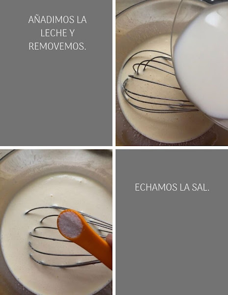 Añadimos la leche y la nata (crema de leche) y removemos bien.