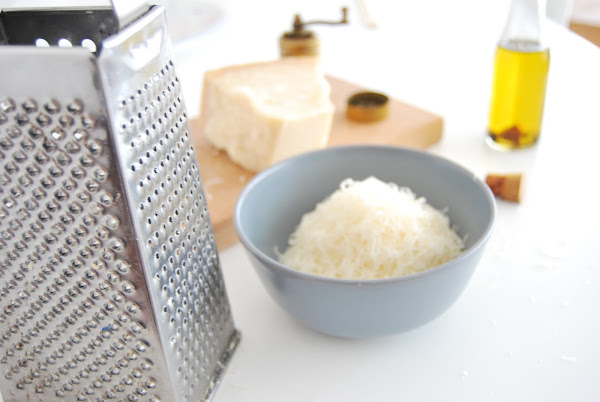 Rallar el queso en el momento, esto es funamental (si sois más perezosas que yo incluso, podéis usar una picadora).