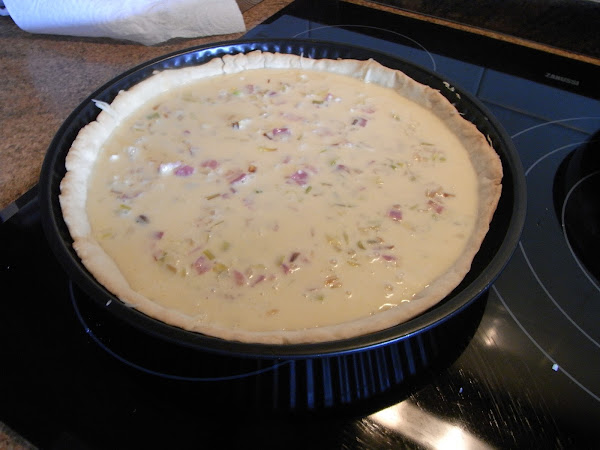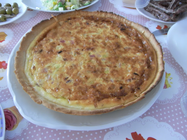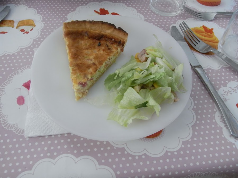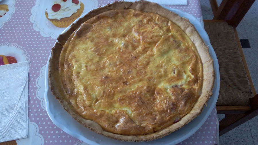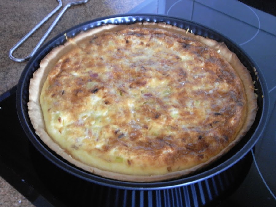 Ya sabréis que la quiche es una tarta salada con una base de pasta quebrada o masa brisa, una crema flanera de huevos y nata (crema de leche) (o leche evaporada, creme fraiche ...) y los ingredientes que más os gusten. Si hacéis la quiche Lorraine lleva puerros, bacon y emmental, pero podéis poner salmón, otras verduras como espárragos trigueros, calabacín, queso de cabra u otros ingredientes.