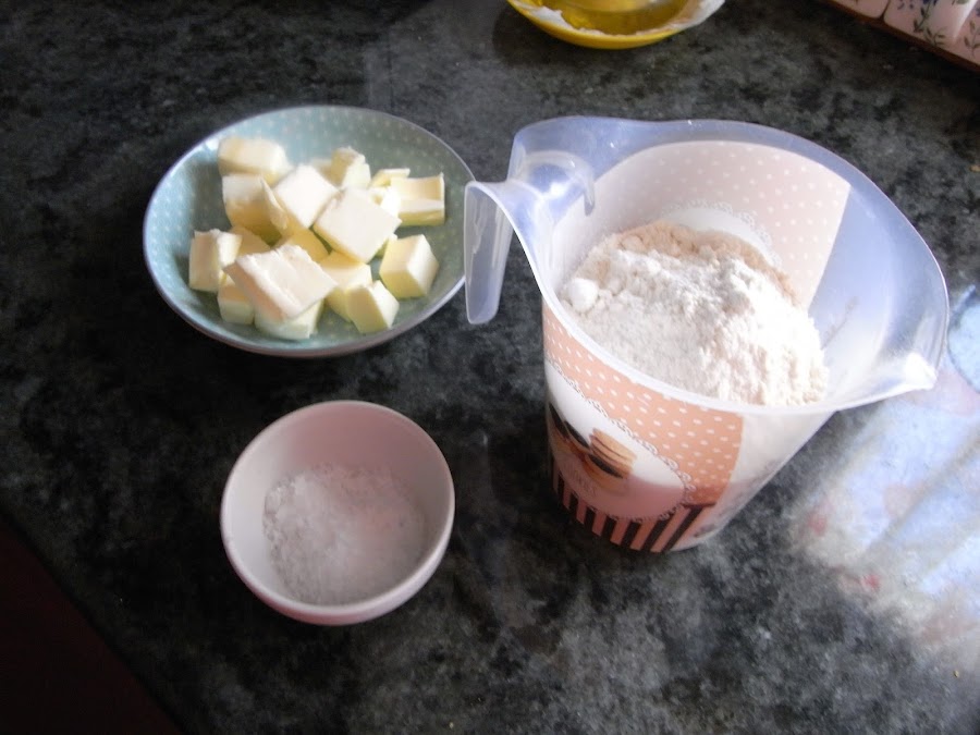 Se pone en un bol la harina, la mantequilla cortada en cubos y un pellizco de sal y se va apretando con los dedos hasta deshacer la mantequilla y que la harina quede como terrosa entonces vamos añadiendo cucharadas de agua fría hasta que cohesione y sea una masa compacta. Yo lo hago con la amasadora pero a mano no cuesta nada hacerla.