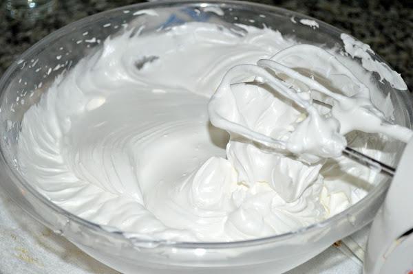 Lo siguiente es agregarle el almíbar a las claras sin dejar de batir, el almíbar debe ser introducido de forma muy lenta, que caiga a las claras en forma de hilo, y batimos hasta que enfríe. Saborizamos a nuestro gusto,o según indique la preparación, se suele saborizar con limón, vainilla, naranja, ron.. en fin con lo que desees.