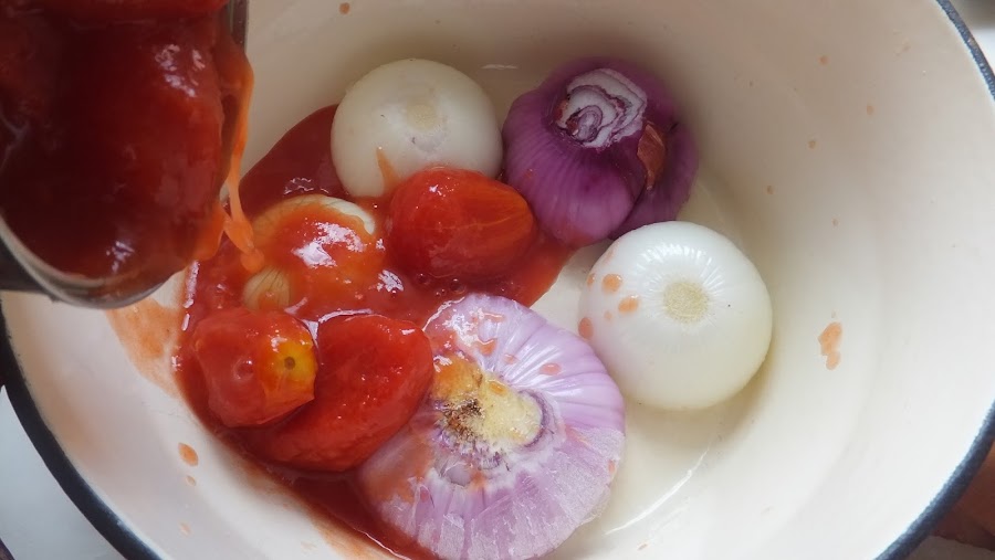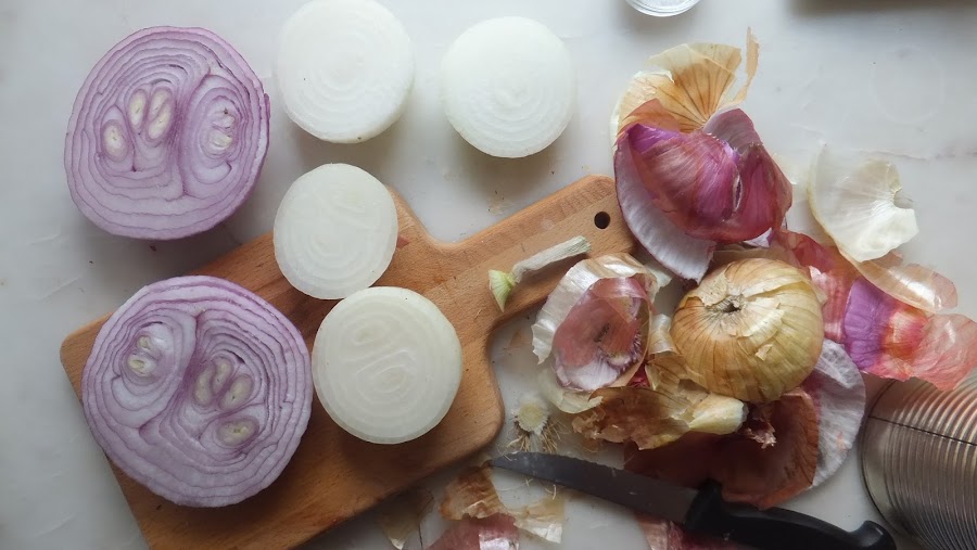 ** Puedes utilizar las cebollas que prefieras siempre que sea una variedad dulce para compensar la acidez del tomate. Yo he utilizado 2 cebollas y media porque una era muy pequeña.
