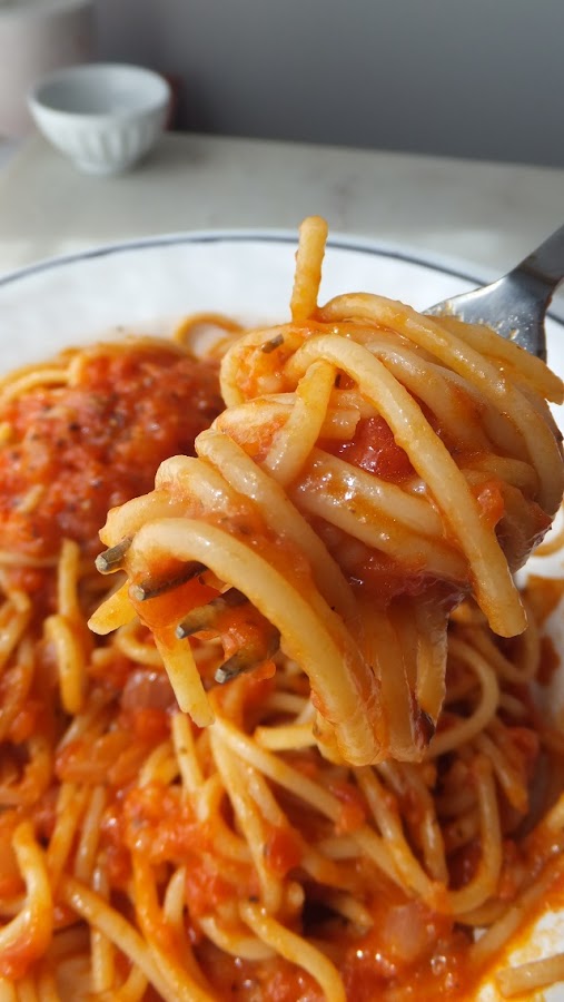 Esta es una receta que guardareis seguro en el recetario familiar para dejársela en herencia a vuestros hijos y nietos y que haréis cada vez que el cuerpo os pida unos buenos espaguetis con tomate. Espero que la probéis y que os guste.