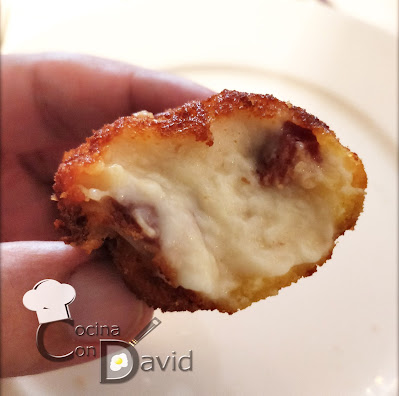 Interior de la croqueta. Muy cremoso y con mucho sabor.