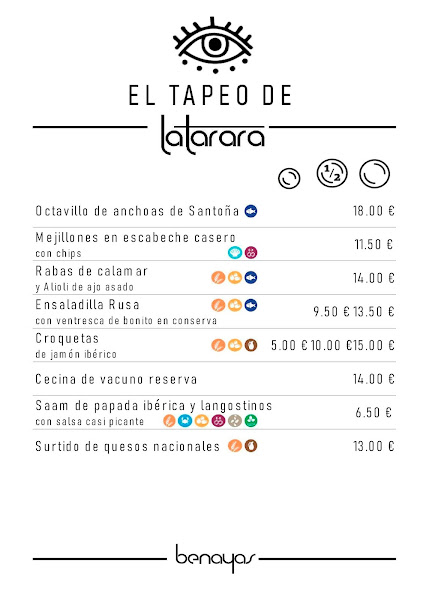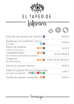La Tarara dispone de dos cartas, una para la zona de barra de tapas y raciones, y una carta con platos elaborados para la zona del restaurante.