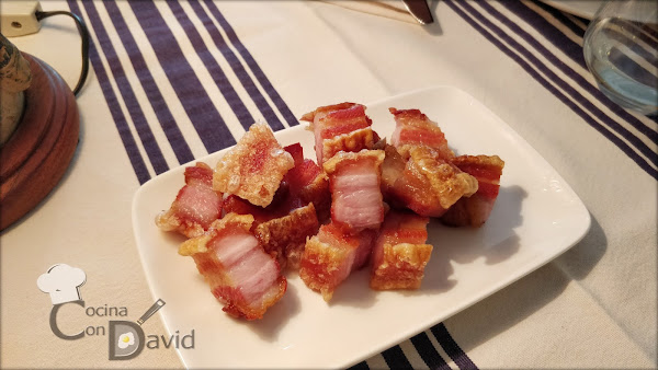 Torrezno de Soria. Crujiente por fuera y muy jugoso por dentro. Muy rico.