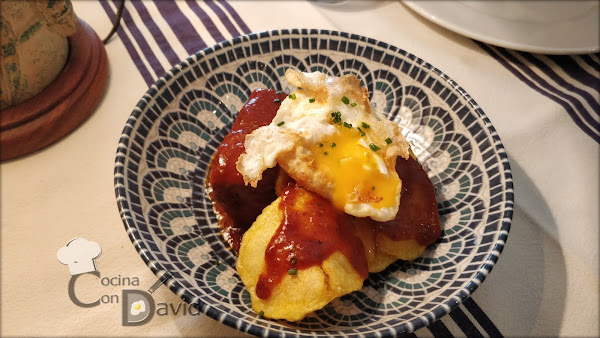 Atún con salsa de tomate. Platazo que me encantó, un buen taco de atún que estaba espectacular, acompañado de patatas panaderas, salsa de tomate casera muy buena y coronado con huevo frito. Buenísimo.