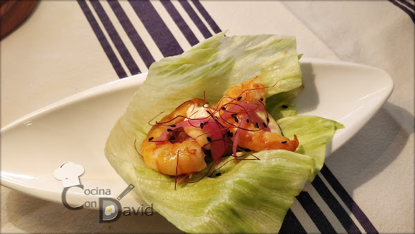 Sam de papada ibérica y langostinos. Un Sam clásico y rico, de langostinos, papada muy suave y sabrosa coronada cebolla encurtida y hilos de chile.