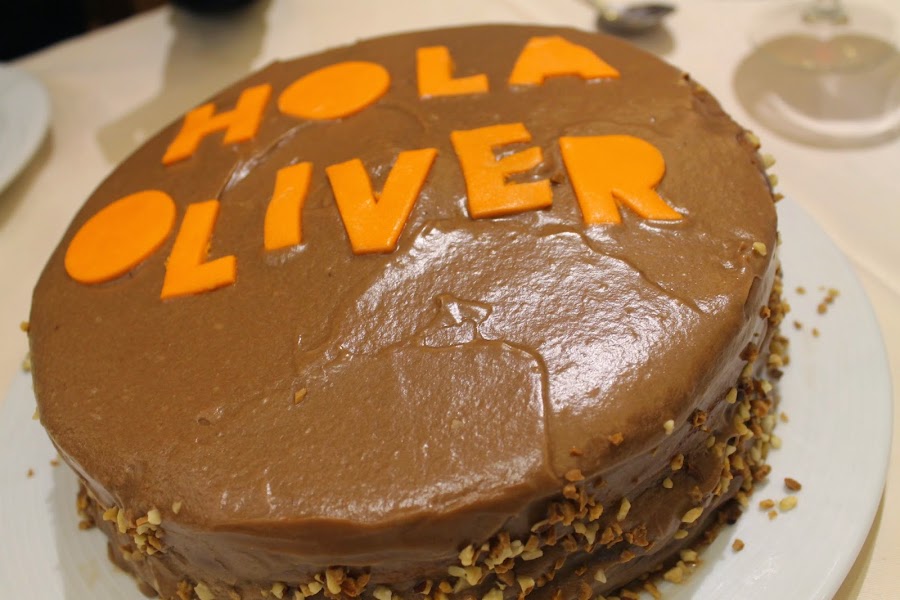 Como nos pareció poco con una tarta para dos, la volví a hacer para la bauti-lona de Óliver, en este caso, la receta original, con la cual salen dos bizcochos y la obra adquiere una altura considerable. No apta para dietas o remilgados en general!!!
