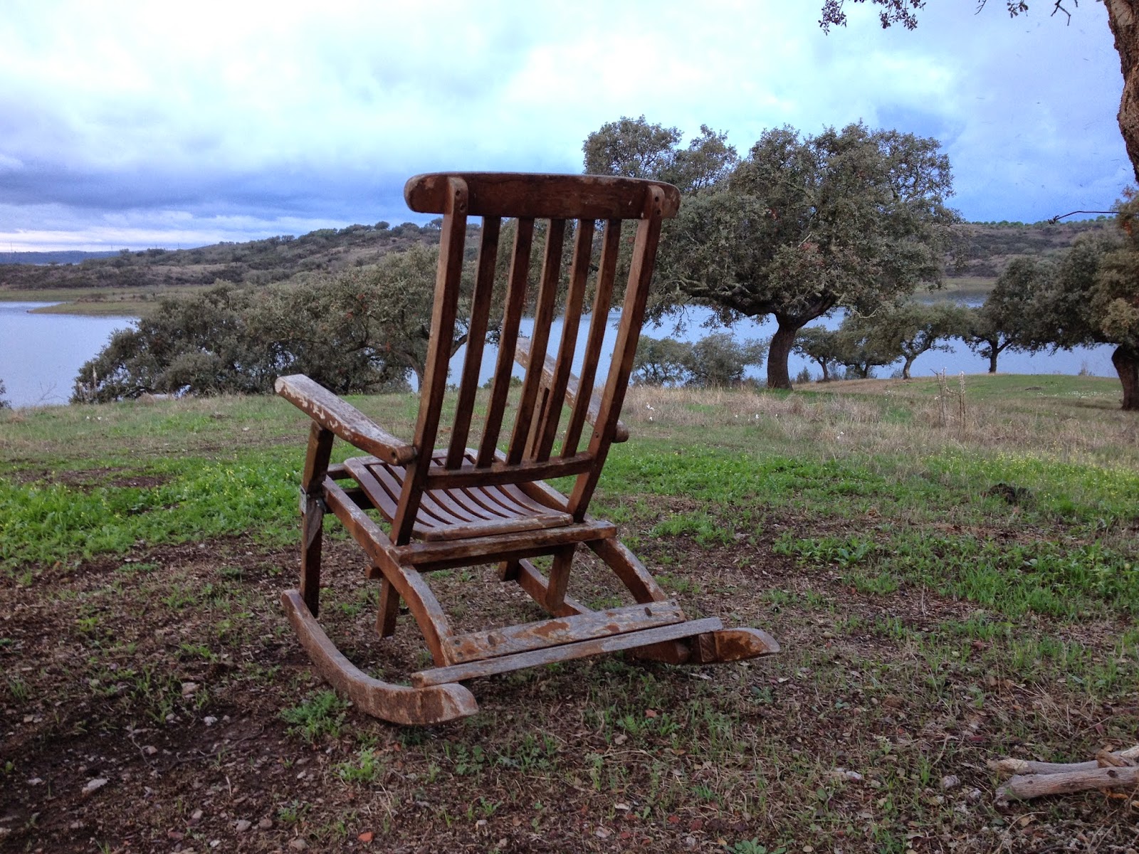Una mecedora con vistas al lago en la Herdade das Alcarias