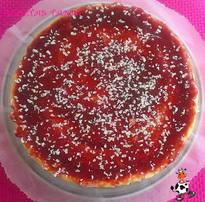 TARTA DE QUESO CON MERMELADA DE FRAMBUESA Y CHOCOLATE BLANCO