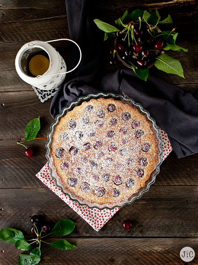 La receta es muy sencilla y es fácil que guste a todo el mundo. La base está hecha con una crema que se asemeja a la receta de crepes. Solo hay que añadir unas deliciosas cerezas y conseguimos una tarta fácil y rápida.