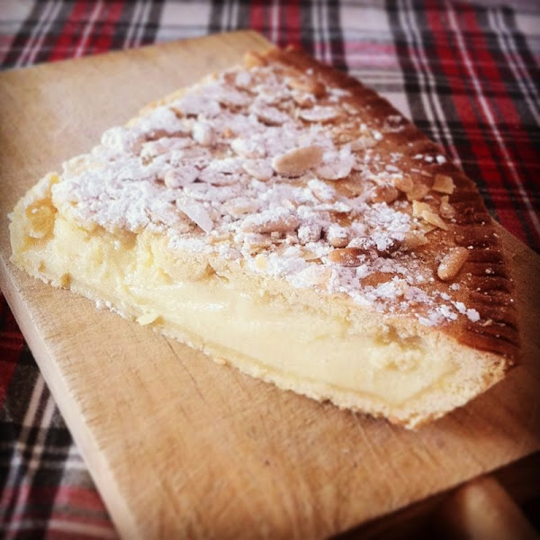La torta della nonna è un delicato dolce típicamente ligure, ma diffuso anche in Toscana, composto da un involucro di pasta frolla ricoperto di pinoli e zucchero al velo che nasconde un ripieno di golosa crema pasticcera.