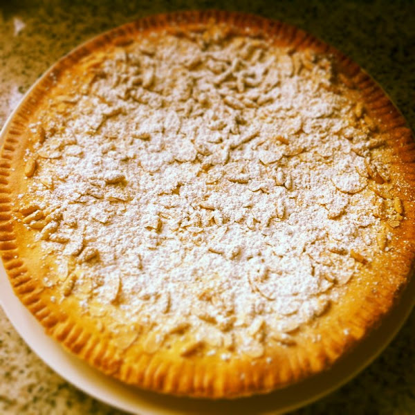 Stendete quindi la restante pasta frolla e ricavate un cerchio della stessa misura del diametro della tortiera, quinndi avvolgete anch?esso sul matterello e poi srotolatelo sulla crema, ciudendo così la torta.