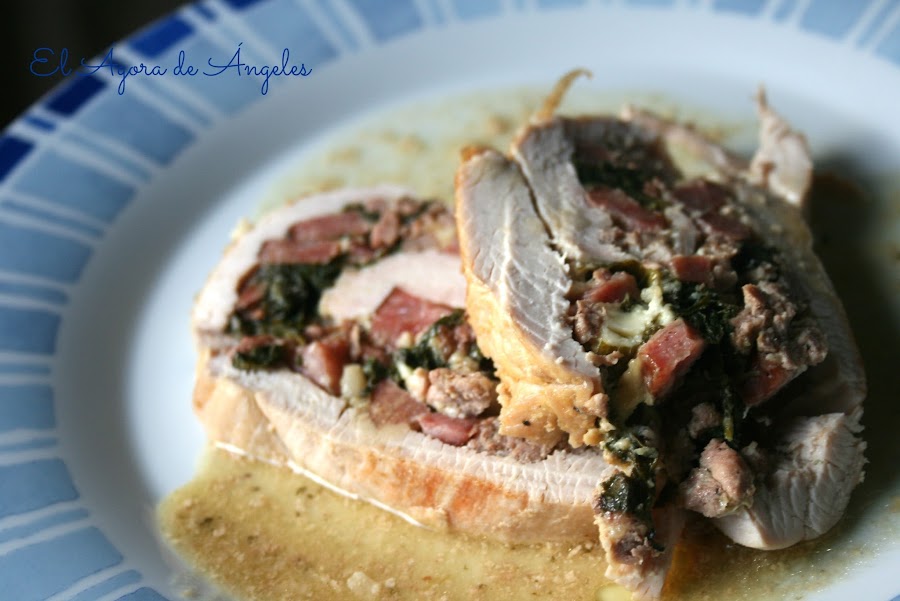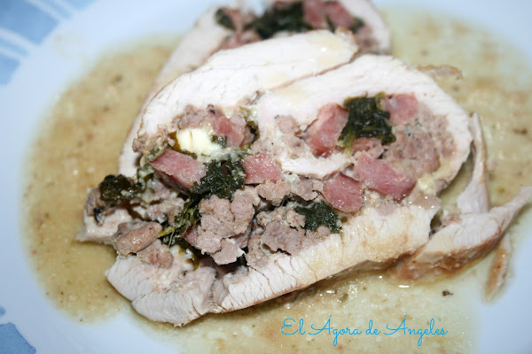 O rollo de pavo con longaniza, picadillo espinacas y queso.