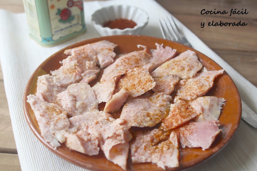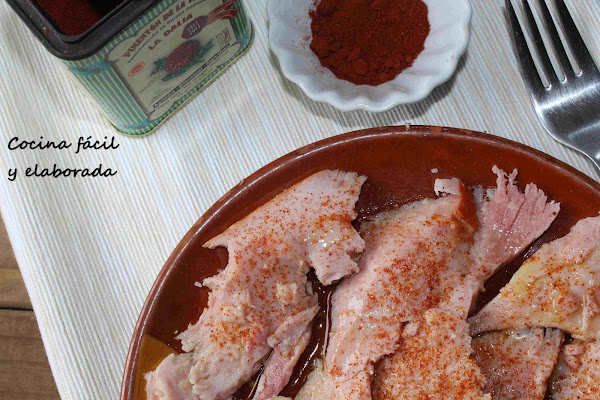 Este aperitivo es de los más fáciles que preparo cuando no quiero liarme en la cocina. Recuerda al pulpo a la gallega, salvando evidentemente las distancias, pero está muy rico, muy sencillo de hacer y en un minuto lo tenemos listo. Con pocos ingredientes se puede hacer este "pulpo a la gallega low cost", jeje. Esta receta se hace en el microondas.