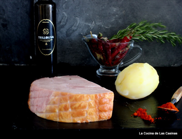 Receta fácil, muy rica, sólo debes recordar que necesitas buenos productos y en España la calidad es excelente. Hoy tengo la suerte de poder unir en una única receta varias comunidades españolas, de Andalucía el Aceite de Oliva Virgen Extra tambien ya presentados aquí y aqui, de Extremadura el Pimentón de la Vera (del que soy fan y tendría que ponerte demasiados aquís), de mi querida Asturias el Lacón y las patatas asturianas y de Galicia su receta, versionada a mi manera. ¿Se puede pedir más?