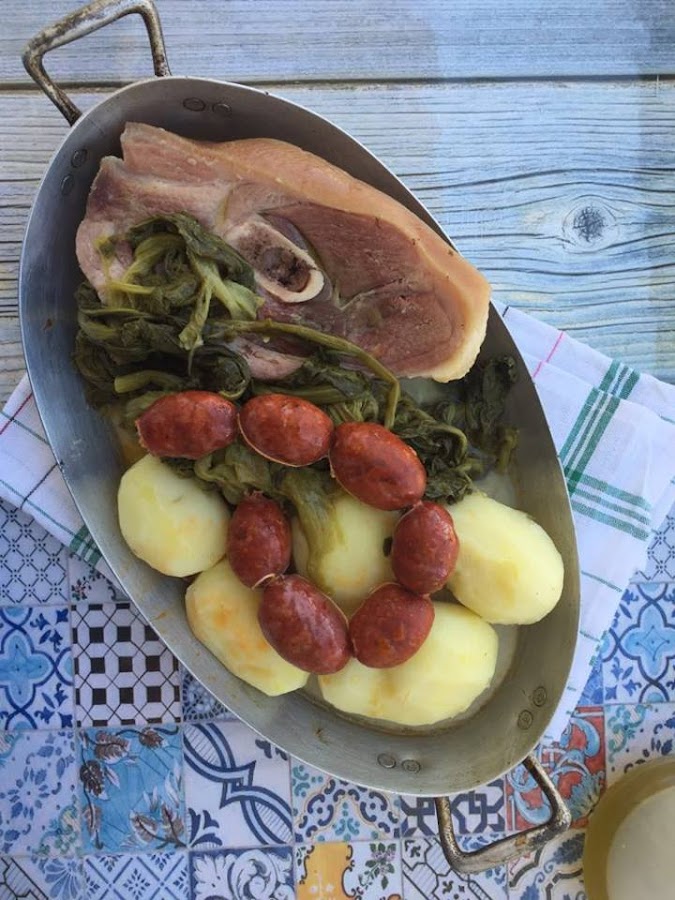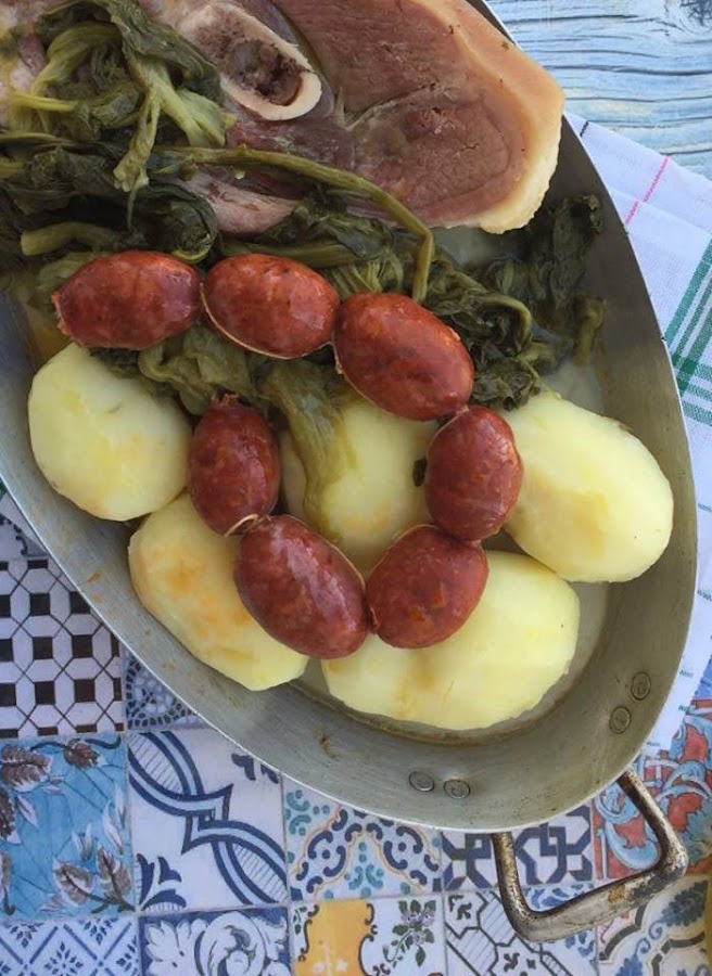 .Emplatamos en una fuente con el lacón, grelos, las patatas , chorizos y un buen chorrito de aceite de oliva por encima.